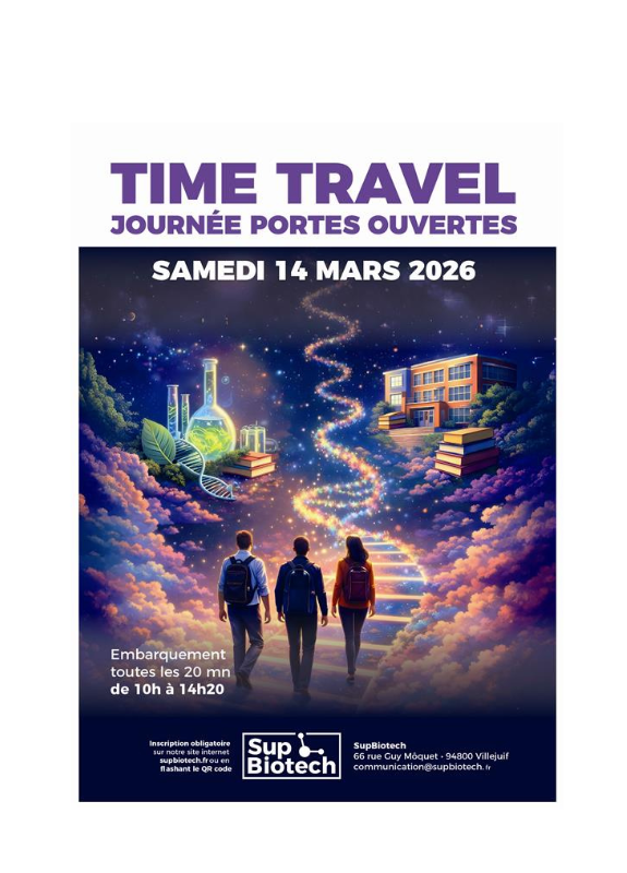 À SupBiotech, nous proposons un événement unique qui propose aux visiteurs de les faire voyager dans le temps pour leur permettre de découvrir, en seulement 2h20, les 5 années d’études d’une école d’ingénieurs en biotechnologies ainsi que les 3 années du cycle Bachelor. Chaque salle visitée représentant une année.